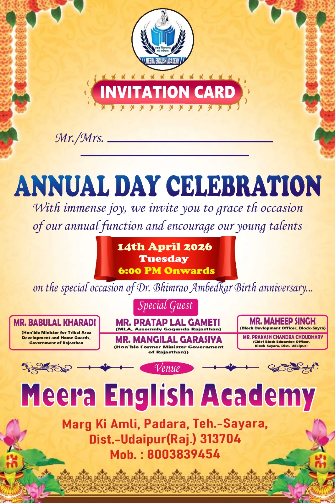 मीरा इंग्लिश एकेडमी का वार्षिकोत्सव कल, कैबिनेट मंत्री बाबूलाल खराड़ी करेंगे शिरकत