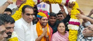 कार्यक्रम के दौरान स्थानीय कांग्रेस कार्यकर्ताओं और छात्र नेताओं ने विनोद जाखड़ को मेवाड़ी साफा और फूलों की माला पहनाकर उनका अभिनंदन किया। संगठन के प्रति उनकी सेवाओं के सम्मान में कार्यकर्ताओं ने उन्हें शौर्य के प्रतीक महाराणा प्रताप की प्रतिमा भेंट की।