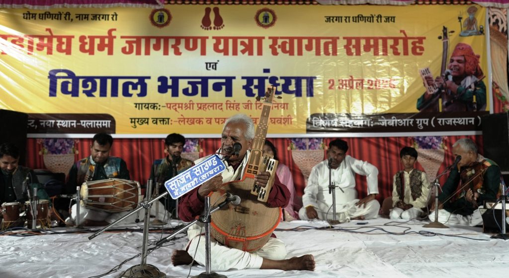 रात 8 बजे जरगाजी के समाधि स्थल व गंगाकुड़ के पास तैयार किए गए प्रांगण में भजन संध्या आरंभ की गई, जिसमें मेवाड़, मेवाड़, मगरा, बोराट और मारवाड़ क्षेत्र से आए हजारों श्रद्धालु मौजूद थे। कबीर भजन गायक पद्मश्री प्रहलाद सिंह टिपानिया ने ‘‘सकल हंस में राम बिराजे’’ और ‘‘मत कर माया रो अभिमान, मत कर काया को अहंकार, काया गार हो जासाी’’ भजन गाए तो श्रोताओं की तालियों की गड़गड़ाहट से जरगाजी पर्वत गुंजायमान हो गया। टिपानिया ने ‘‘गणा दिन सो लियो रे, अब तू जाग मुसाफिर जाग’’, ‘‘हमें साहिब से मिलना है’’, ‘‘कहां से आए कहां जाओगे, खबर करो अपने तन की’’, ‘‘जरा हलके गाड़ी हांको मेरे राम गाड़ी वाले’’ जैसे कई भजन सुनाए। इस बीच उन्होंने कबीर भजनों के सार भी बताए।